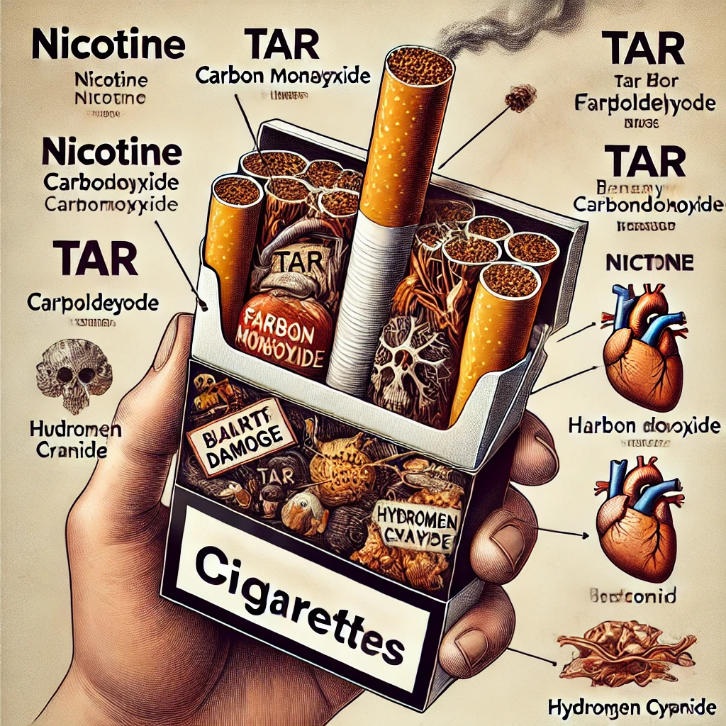 บุหรี่เป็นสิ่งที่คนทั่วโลกรู้จักและถูกใช้กันมาเป็นเวลานาน แต่ไม่ใช่ทุกคนที่รู้ว่าภายในบุหรี่ประกอบไปด้วยสารเคมีหลากหลายชนิดที่เป็นอันตรายอย่างยิ่งต่อสุขภาพ การสูบบุหรี่ไม่ได้เป็นเพียงการสูบนิโคตินเท่านั้น แต่ยังสูบสารพิษอื่น ๆ ที่มีผลกระทบต่อร่างกายอย่างร้ายแรง ในบทความนี้ เราจะสำรวจถึงองค์ประกอบหลักในบุหรี่ที่เป็นอันตราย รวมถึงผลกระทบของสารเหล่านี้ต่อสุขภาพ
